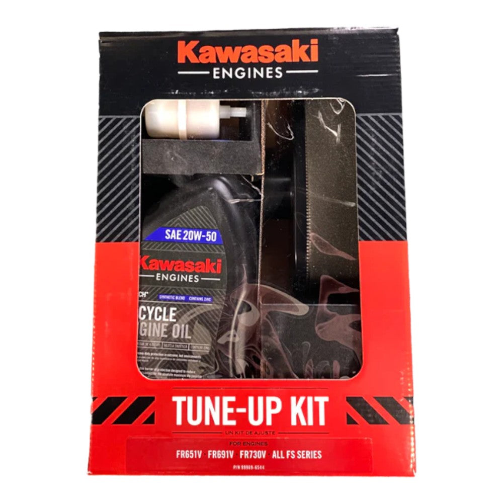 Kit includes: (2) Quarts of K-Tech Engine Oil: SAE 20W-50 (Part #99969-6298) (1) Round Air Filter: (Part #11013-0752) (1) Air Filter Pre-Filter: (Part #11013-7046) (1) Oil Filter: (Part #49065-0736) (1) Fuel Filter: (Part #49019-0031) (2) Spark Plugs: NGK BPR4ES (Part #99969-6081)
